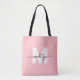Bolso de mano con monograma de nombre con escritura moderna y elegante en rosa y blanco personalizado. Añade un toque suave y femenino a tu estilo diario con este bolso chic y divertido. Con un fondo rosa pastel y una inicial blanca en negrita (sin brillo ni lámina metálica), combinado con un elegante monograma de nombre en escritura negra, este bolso combina la elegancia femenina con un estilo fresco y moderno. Con un diseño limpio en ambos lados, es perfecto para llevar tus cosas esenciales a clase, al trabajo o a un día divertido. Ideal para hermanas de fraternidad, damas de honor o como regalo divertido para una despedida de soltera, este bolso también es un regalo fabuloso para cumpleaños, días festivos o cualquier ocasión especial. Elegante, funcional y lleno de personalidad, este bolso personalizado es la adición perfecta a la ropa de cualquier chica de moda.