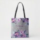 Bolso De Tela Boda de Acuarela Floral Morado y Brillo Plateado