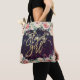 Plantillas de bolsitas de tote para Boda de flores - Guión falso de Relieve metalizado dorado, Elegante color de agua Floral de rosas blancas y luces de cadena en fondo de guijarros de esparkle morado. ¡Un Diseño Perfecto Para Tu Gran Día! Todos Los Estilo De Texto, Los Colores Y Los Tamaños Se Pueden Modificar Para Ajustarse A Sus Necesidades.