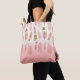 Bolso tote boho personalizable con plumas de acuarela rosa blush y acentos de lámina dorada falsa y ombre rosa blush. Personaliza añadiendo nombres y otros detalles. Este bolso tote de plumas boho será perfecto como regalo personalizado.