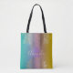 Irradia positividad dondequiera que vayas con este impresionante diseño espiritual. La obra de arte presenta un intrincado patrón de mandala de filigrana dorada, que recuerda a un loto floreciendo, dividido elegantemente en la parte superior e inferior. Este arte lineal de estilo metálico se asienta sobre un soñador fondo degradado de arcoíris pastel que se desvanece sin problemas desde el turquesa y el teal, pasando por el lila suave, hasta un dorado mostaza cálido. El efecto ombre de estilo acuarela le da a la bolsa una profundidad moderna y artística.