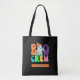 ¡Convierte a tu familia o grupo de amigos en el "Boo Crew" oficial esta Halloween! Esta bonita bolsa de tetas fantasma presenta una tipografía colorida y brillante y una imagen de un fantasma que lleva una abeja naranja y un café helado, y el nombre de la persona. Combinando vibraciones estacionales espeluznantes modernas y vintage, esta bolsa de equipaje es perfecta para el truco o el tratamiento, fiestas caídos, recolección de calabazas o simplemente mostrar tu amor por todas las cosas de Halloween!