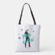 Comienza la fiesta con esta divertida bolsa de mano "Disco Darlin'", para toda la comitiva de la novia, en plateado brillante y azul turquesa. Una silueta de vaquera con sombrero plateado brillante y tipografía llamativa "Disco Darlin'", está acentuada por estrellas. Agrega la fecha de tu evento utilizando la plantilla proporcionada. Busca ID925 para ver otros productos de la colección de moda.