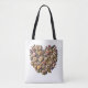 Flores de verano en plena floración en forma de corazón. Esta bolsa de tote tiene un diseño único con una colorida colección de flores en forma de corazón.