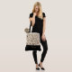 Esta encantadora mochila hacia adelante muestra la palabra "novia" en un color de texto Golden-Caramel sobre negro con la bolsa superior de tote en beige con viñas de chocolate y rollos por todas partes. Tiene mucho espacio para el texto personalizado. Los gráficos y el texto están a ambos lados de este bolso. Mango negro. Personalizar más adelante o compra como se muestra.
