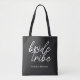 Simple, moderno y elegante lema "Bride Tribe" con letra de escritura en negro y blanco en un estilo moderno. Los nombres se pueden personalizar con los nombres de tu grupo de boda. Puedes usarlo para la novia, las damas de honor, las niñas que llevan flores o la madre de la novia. Los accesorios coordinados para el equipo de la novia funcionan bien para una fiesta de boda, una despedida de soltera, la mañana de la boda o el brunch del día después de la boda. Hace un regalo personalizado considerado para el grupo de boda.