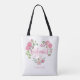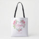 Soft pink watercolor flowers form a delicate wreath around the word “Bridesmaid,” creating a light and romantic look for bridal party gifts. Personalize the bag with a name to make each one special for the wedding celebration or bachelorette party.