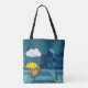 Bolso De Tela Búho lindo con paraguas en el día de lluvias