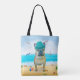 El perro lindo sentado en la playa es un regalo perfecto para alguien que ama esta raza de perro.