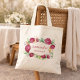 Bridesmaid floral de Borgoña con el nombre de Tote Bag Esta es la bolsa perfecta para la dama de honor con flores de borgoña para comenzar las celebraciones. Este diseño presenta un marco floral de color burdeos con un tipo de letra burdeos que se puede personalizar para cada miembro de la fiesta nupcial. Visite nuestra tienda para coordinar accesorios.