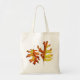El otoño sale una bolsa de tetas con un ilustracion de tinta y acuarela que representa dos hojas de encino amarillo parduzco. Una de las hojas tiene un lado ondulado que parece una mano que da a su pareja de baile. Este diseño de amante de la naturaleza tiene un fondo de personalizable.