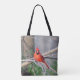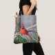 El negrita cardenal rojo del norte presenta un retrato encantador en una bolsa de tocador útil. Ideal para los amantes de estos pájaros más alegres.