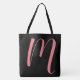 Un diseño bonito y monogramado para un totebag negro, con plantillas para una gran inicial y un nombre