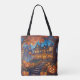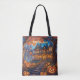 Esta bolsa presenta una mansión espeluznante en el bosque con ventanas iluminadas rodeadas de muchas calabazas. ¡Perfecto para Halloween! Texto personalizado.