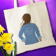 Honra a tu mejor amiga con el bolso tote Honor de Dama de Honor de Cabello Marrón con Chaqueta de Mezclilla Dibujada a Mano. Este tote de moda presenta una ilustración dibujada a mano de una mujer de cabello marrón que lleva una chaqueta de mezclilla azul claro, con las palabras "Dama de Honor" escritas elegantemente en letras blancas en la parte posterior. A la derecha de la ilustración, hay un espacio personalizable para el nombre de la dama de honor y la fecha de la boda, que se muestra en una fuente moderna de color azul polvoriento. Perfecto como regalo para la mano derecha de la novia, este tote es un recuerdo elegante y sentimental para las fiestas de despedida de soltera, las fiestas de boda y las festividades del día de la boda.
