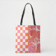 Bolso De Tela Cheques y Swirls - rosa, Naranja y crema