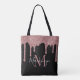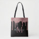 Bolsa Tote Chic Monograma de Glitter de Rosa y Negro con destellos de purpurina rosa/oro sobre un fondo negro elegante con tu monograma y nombre personalizados. Diseñado por Cedar and String. Para personalizar aún más, por favor haz clic en el enlace "personalizar más" y utiliza la herramienta de diseño para modificar el diseño. Si necesitas ayuda o artículos coincidentes, por favor contáctanos en cedarandstring@gmail.com