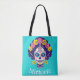 Chica de la Bolsa de Tote, floral floral floral personalizada - Tonos de verano audaces y vibrantes adornan este hermoso esqueleto azucarero espeluznante con flores en la cabeza. Personalice agregando su nombre u otro texto. Perfecto para los amantes de Halloween, los que disfrutan de cosas oscuras y espeluznantes o los que celebran el Día de los Muertos. ¡Hace un gran regalo de cumpleaños también!