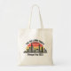 Personalized Chicago Illinois vacation tote bag with a silhouette of the city skyline in front of a cool sunset. Cool trip keepsake souvenir for a family trip.