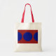 Este patrón geométrico audaz presenta un círculo azul en el centro y dos círculos medios azules en los bordes de un fondo rojo. Si desea añadir un monograma o una imagen al diseño, haga clic en el botón "Personalizar". Imagen creada digitalmente. Copyright © 2011 Claire E. Skinner. Todos Los Derechos Reservados.