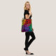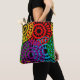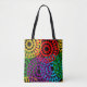 Esta bolsa de tote tiene un diseño de Historia Negra de grandes círculos formados de formas de gotas de lluvia y círculos en rojo, amarillo, púrpura, verde y turquesa.
