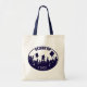 Clase de Regalos de Graduación Tote Bag con una silueta negra o estudiantes graduados lanzando gorros al aire agitando las manos en emoción y dentro de un oval con clase curvada en la parte superior y el año graduándose en la parte inferior.