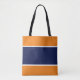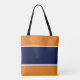 Este diseño deportivo y nítido presenta una banda central de color azul marino realzada con franjas blancas delgadas contra unas líneas exteriores naranjas brillantes y elegantes.
