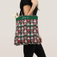 Los muñecos de nieve en gorras y bufandas, entremezclados con flores blancas y ramas sobre un fondo verde, crean un divertido collage perfecto en esta bolsa de tote de vacaciones. Personalice su nombre en una banda verde en la parte superior.
