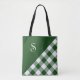 El patrón geométrico audaz presenta un triángulo verde del cazador en la parte superior izquierda con un monograma de guión de personalizado blanco de moda, y la verificación diagonal de búfalo verde oscuro y blanco en la parte inferior derecha. Personalízalo con tu inicial en la barra lateral. Para ver el diseño Patrón de Gingham Verde y Blanco en otros elementos, haga clic en el enlace "Artes Rocklawn" debajo. Imagen creada digitalmente. Copyright ©Claire E. Skinner. Todos Los Derechos Reservados.