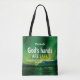 Elegante confianza cristiana personalizada en la bolsa de tote del Señor, con vibrante fondo de las auroras boreales. El texto principal dice que LAS MANOS DE DIOS SON SEGURAS en la tipografía blanca y amarilla. El verso de la Biblia es CONFIANZA EN JEHOVAH CON TODO TU CORAZÓN, basado en los proverbios 3:5-6. El nombre del marcador de posición es PERSONALIZABLE para que pueda agregar su nombre o crear su propio texto (hasta dos líneas). El diseño se repite al revés. Podrá elegir entre una amplia selección de citas inspiradoras cristianas sobre totes, diseñadas por los diseños bereños.