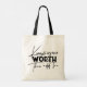Know Your Worth Inspirador Motivational Quote Tote Bags (Conoce tu valor y agrega impuestos) presenta un guión negro moderno de caligrafía con el gracioso refrán positivo de "Conoce tu valor". Diseñado por Evco Studio www.zazzle.com/store/evcostudio