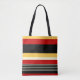 Las rayas que se repiten con colores brillantes como el amarillo mostaza con fondo rojo oscuro y negro, lo que hace que tu bolsa de compras sea más asombrosa. Pruébalo y comparte tus comentarios.