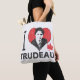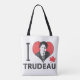 Corazón Trudeau. Amo A Justin Trudeau. Con una hoja de arce canadiense roja. Primer Ministro liberal de Canadá. El rostro de Justin hecho como un ilustracion gráfico y terminado en una mirada estridente y angustiada.
