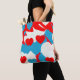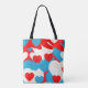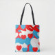 Gráficos de corazón de estilo retro en rojo, blanco y azul sobre bolsas de tote.