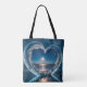 Descubra la serena belleza de este diseño de tote de hombro, con un corazón de cristal frente a un cielo estrellado nocturno y un océano tranquilo, perfecto para llevar amor y sueños.