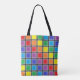 Resumen de arte digital de cuadrados de color arcoiris sobre un fondo negro con lo que parece arañazos blancos dentro de cada cuadrado.