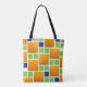 Combinaciones de colores cuadrados de naranja amarillo dorado degradado, cuadrados de color verde limón y azul en baldosas.