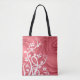 Este tote cuenta con un diseño de arte digital de remolinos sombreados sobre un fondo rojo con viñas y flores blancas. Haga clic en personalizar, para agregar texto en un tipo de estilos, tamaño y color que desee.
