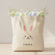 Make Easter extra special with this personalized Easter bunny tote bag, featuring a cute minimalist bunny face and custom name. Perfect for Easter egg hunts, spring outings, and festive family photos, this reusable tote is a charming alternative to traditional Easter baskets.