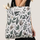 A chic tote featuring stylized olive and brown leaves and tiny flowers on a clean off-white background. Add your name or initials for a personalized, nature-inspired look.