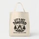 "Let's get toasted" by the campfire! Change the text field as you wish. See my store for more camping and hiking items.