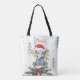 This charming Christmas tote bag features a sweet baby elephant wearing a Red Santa hat, surrounded by pine greenery and snowy trees. A perfect holiday gift for animal-loving kids and safari lovers. Personalize with name nd make it more attractive.