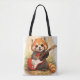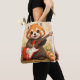 This cute red panda tote bag features an adorable fluffy red panda playing a bright red guitar, surrounded by soft floral elements. The mix of kawaii animal style and music theme creates a fun and eye-catching design full of personality.