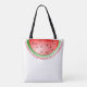 una bonita bolsa decorada con maíz en la mazorca, sandía, jalapenos pimientos, hamburguesas y perritos calientes.