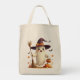¡Lleva tu espíritu de Halloween por todas partes con esta adorable bolsa de tote fantasma brumosa! Con un fantasma alegre en un gorra de puntillas sosteniendo una escoba y una linterna de jack-o’, rodeado de calabazas, murciélagos y hojas de otoño caídas. Perfecto para trucos o tratamientos, carreras de comestibles, visitas a parches de calabaza, o como una bolsa diaria reutilizable. Duradero y elegante, este tote le da un toque festivo a su temporada de otoño.