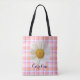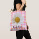Bolso De Tela Daisy and Custom Name on Pink Plaid Pattern Tote B