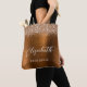 Esta elegante bolsa tote moderna para dama de honor presenta un borde de brillo falso de cobre. Agregue su nombre en escritura a mano blanca y la palabra "dama de honor" u otro título en fuente sans serif sobre un fondo de metal cepillado falso de cobre.