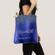 Esta elegante bolsa tote para dama de honor moderna cuenta con un borde de purpurina falsa azul marino. Agrega su nombre en escritura a mano blanca y la palabra "dama de honor" u otro título en fuente sans serif sobre un fondo de metal cepillado azul falso.