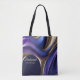 Completa el cuadro de elegancia con esta bolsa tote moderna para damas de honor que presenta arte fluido abstracto en azul, púrpura y dorado. Esta bolsa tote no solo es un accesorio elegante, sino que también combina perfectamente con el atuendo de la novia y sus damas de honor y con la decoración general de la boda. Con amplio espacio y asas resistentes, es práctica y chic, lo que la convierte en la compañera perfecta para lo esencial en este día especial. Lleva amor, belleza y fuerza contigo mientras inicias este nuevo viaje.