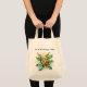 Bolsa elegante y festiva de estilo estacional, con hojas huecas, bayas y flores a ambos lados. Las palabras que están encima de la imagen son "Deck the halls with boughs of holly". Un bonito diseño vacacional para los Navidades de compras, la bolsa también hace un útil regalo de novedad.